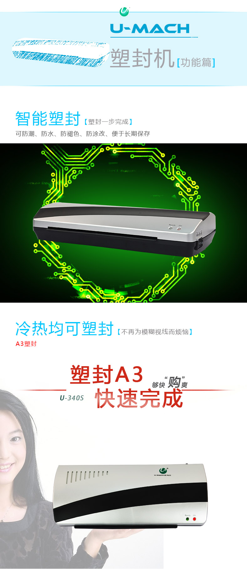 商品名称:优玛仕 U-340S A3 2辊塑封机(计价单位:台)
