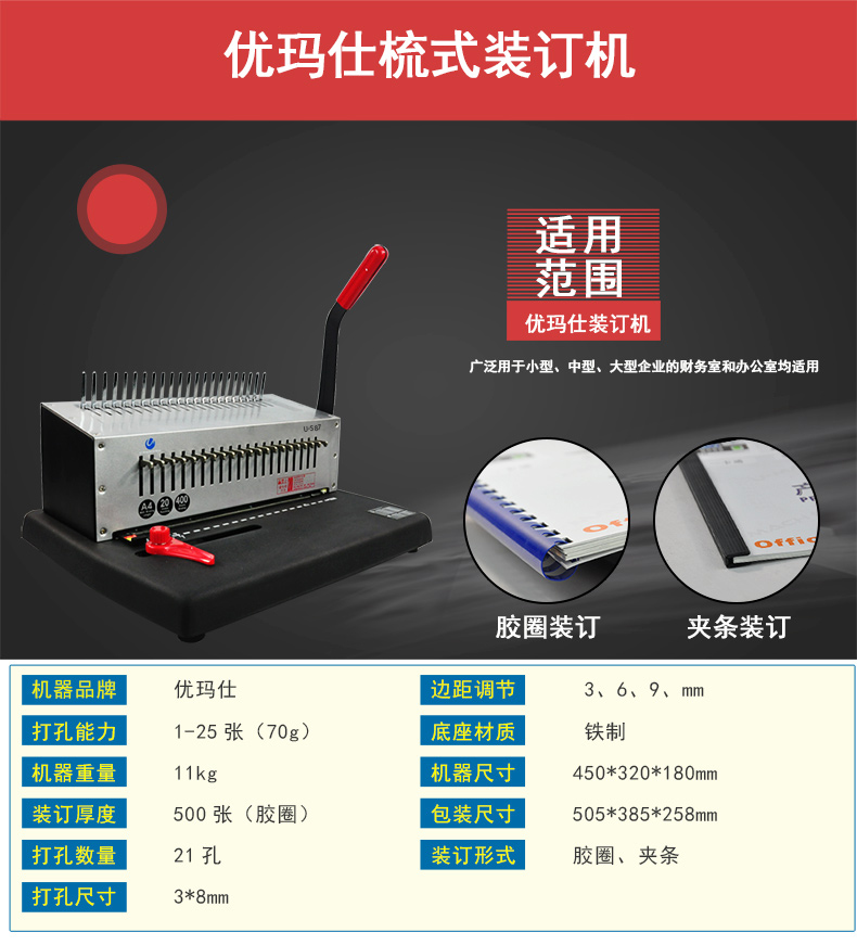 商品名称:优玛仕 U-S87 梳式装订机(计价单位:台)