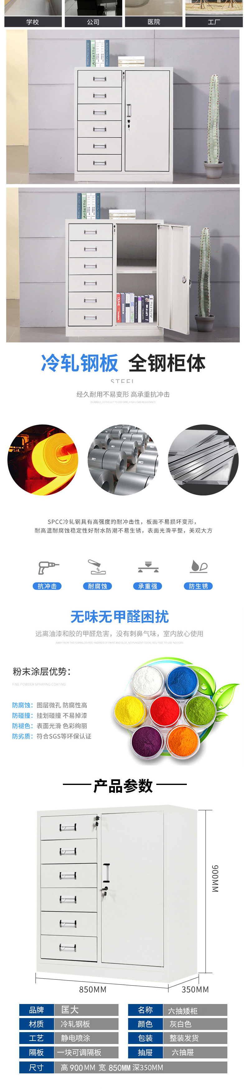 商品名称:匡大 铁皮文件柜办公资料柜储物柜矮六斗 白色