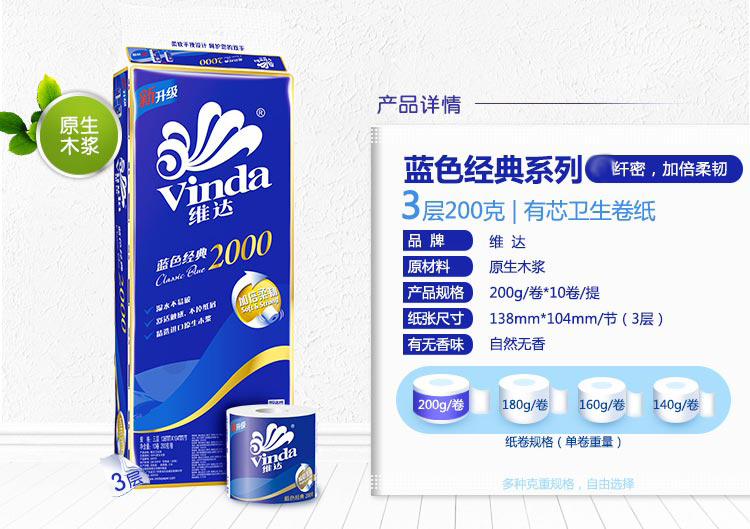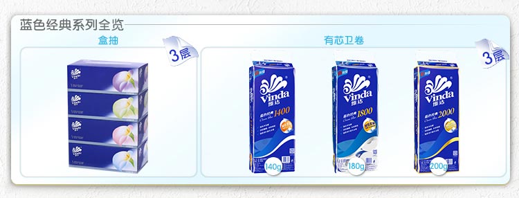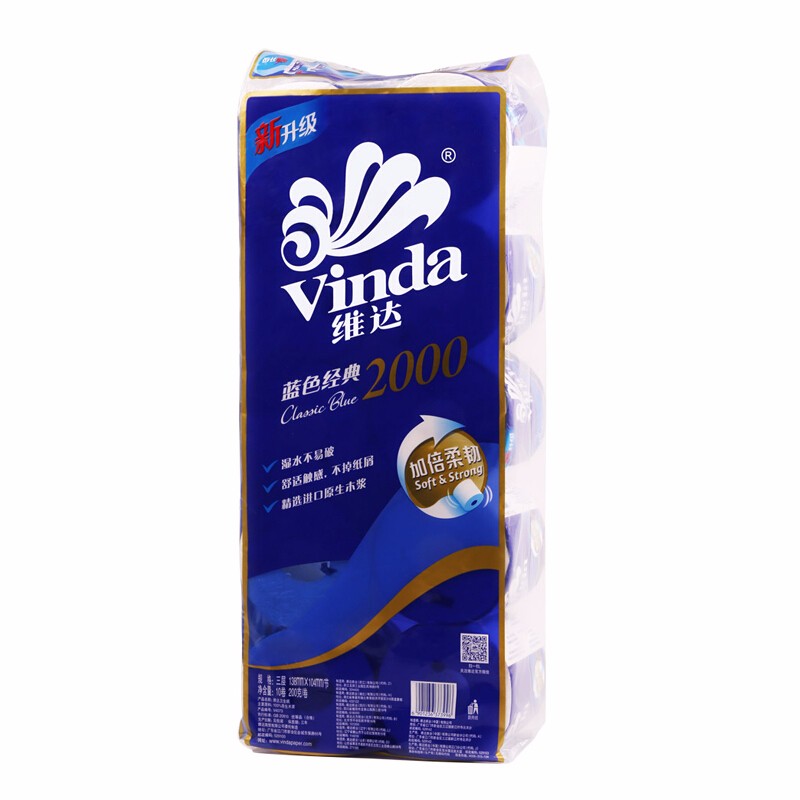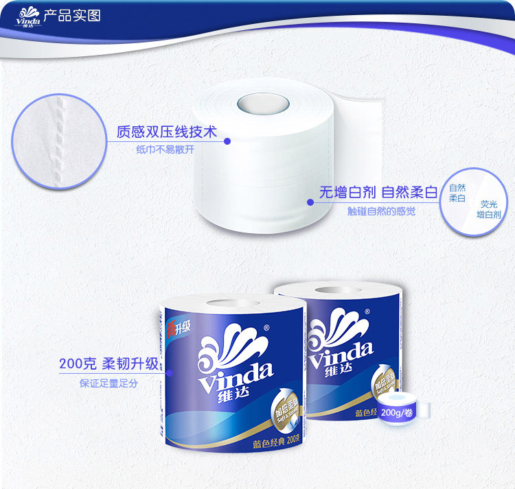 商品名称:维达 V4073 蓝色经典卷纸 4层 200g 10卷/提 x6条/箱 单位:提