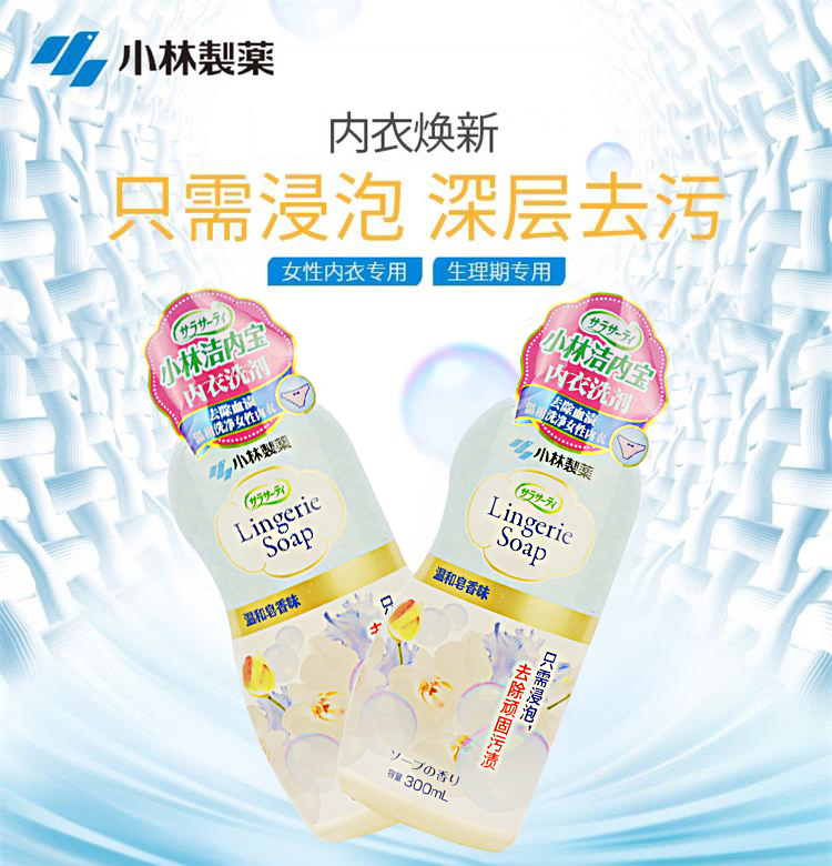 商品名称:小林制药(KOBAYASHI)洁内宝女性内衣内裤清洗剂生理期专用去血渍去污清洁洗涤剂洗衣液300ml