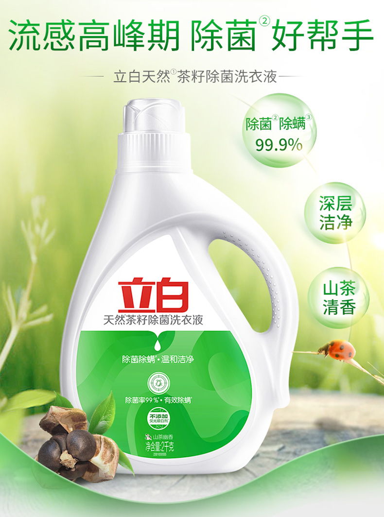 商品名称:立白除菌除螨洗衣液12斤(2kg×2+1kg×2瓶)除菌率99% 有效除螨