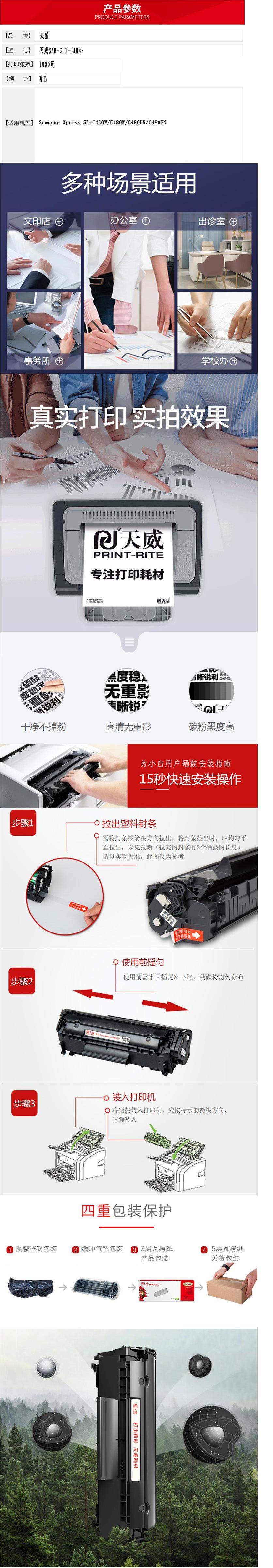商品名称:天威 SAM-CLT-C404S专业装青粉盒带芯片 适用于Samsung Xpress SL-C430W C480W C480FW C480FN
