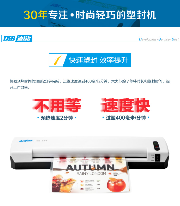 • 商品名称:DSB HQ-336 快速型塑封机 A3 冷裱 热裱 过塑机 赠裁纸刀+倒角器