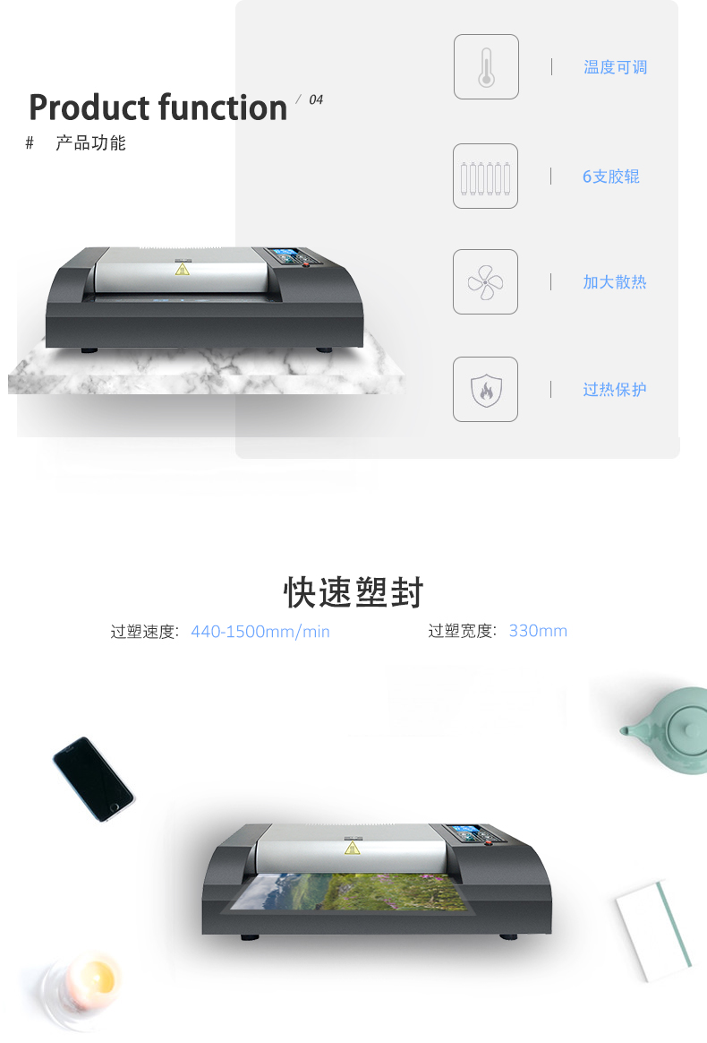 商品名称:优玛仕 U-6330 塑封机 4辊A2幅面塑封机1台 独特的6胶辊可翻转设计 热塑、冷裱两用 有反转功能(计价单位:台)