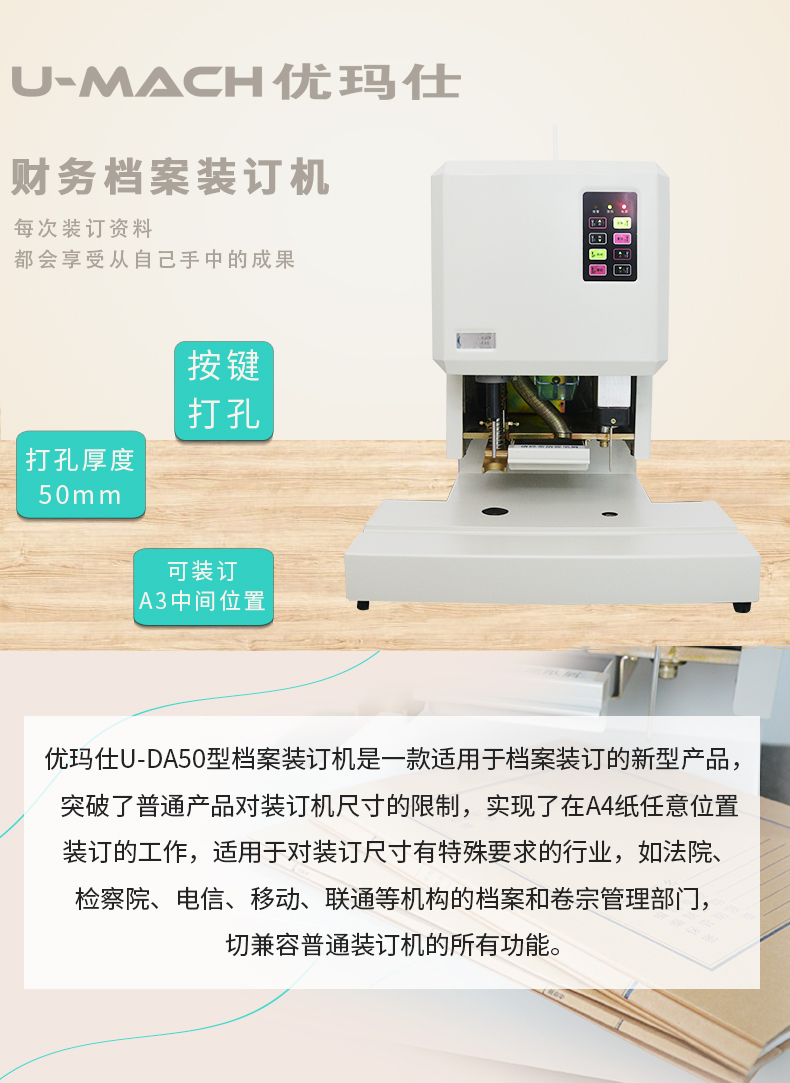 商品名称:优玛仕 U-DA50 档案财务凭证装订机(计价单位:台)