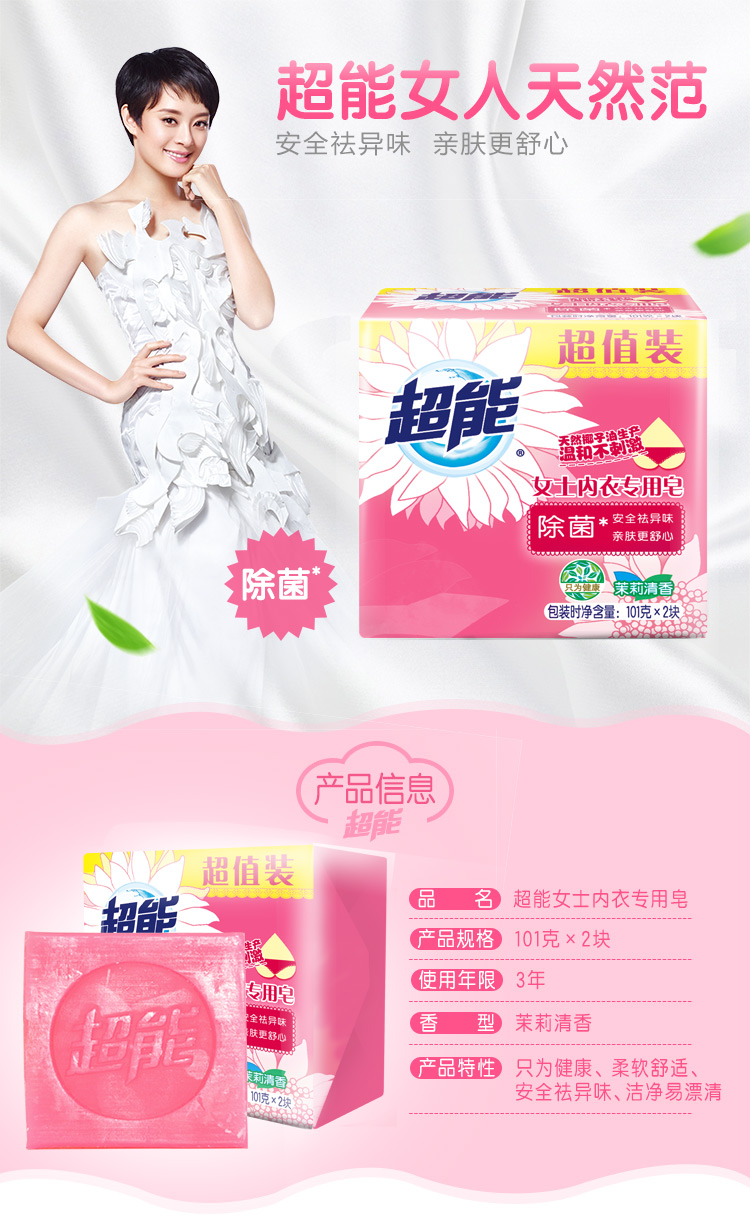 商品名称:超能 女士内衣专用皂101g*2块 洗衣皂/肥皂 除菌抑菌 天然椰油提炼 温和亲肤 茉莉清香
