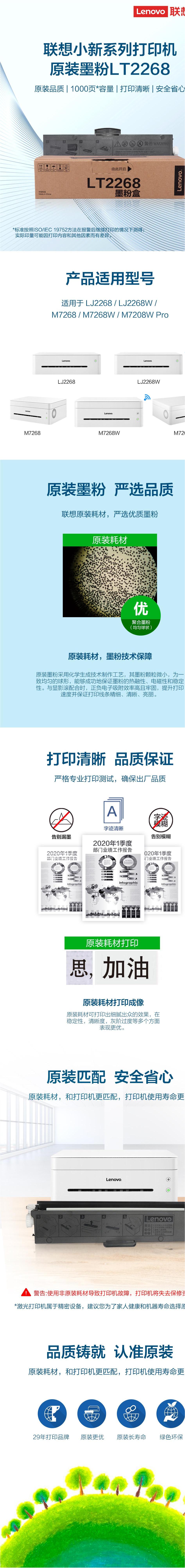 商品名称:联想(Lenovo)LT2268黑色原装墨粉(适用于LJ2268 LJ2268W M7268 M7268W M7208W Pro)