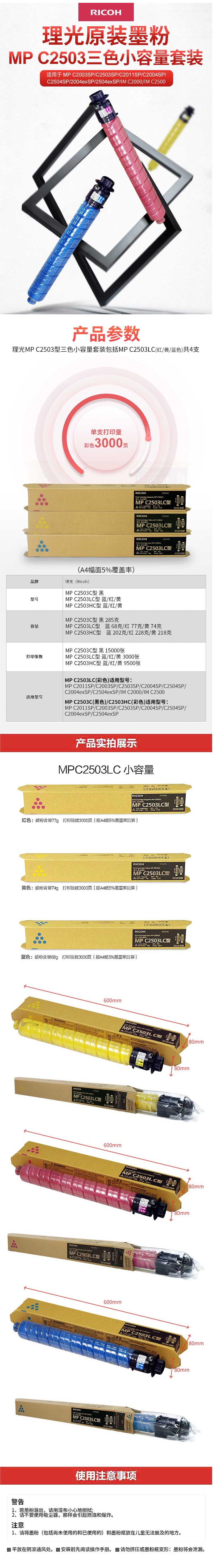 商品名称:理光(Ricoh)MP C2503C 碳粉小容三色套装(红 蓝 黄)