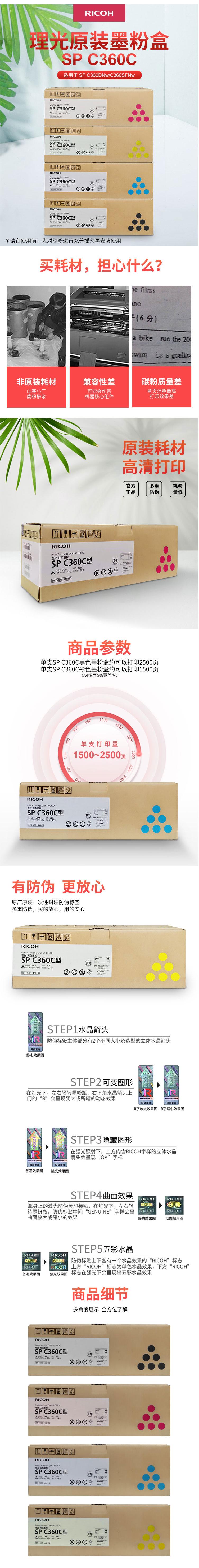 商品名称:理光(Ricoh)SP C360C 黑色墨粉盒1支装 适用于SP C360DNw C360SFNw