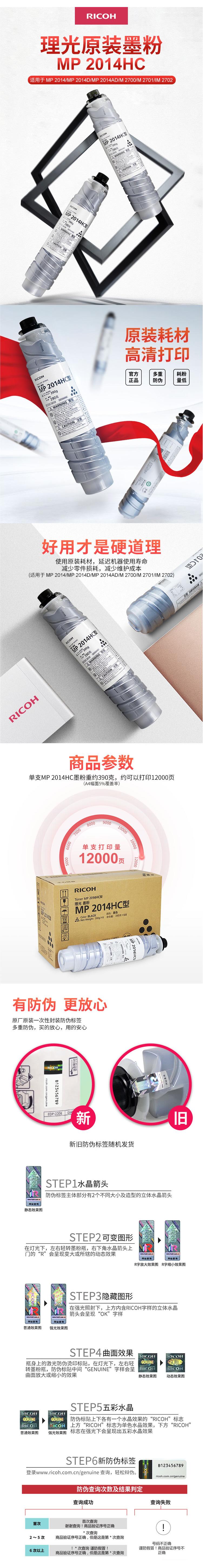 商品名称:理光(Ricoh)MP 2014HC-BK 碳粉1支装 适用MP2014 MP2014D MP2014AD M 2700 M 2701 IM 2702