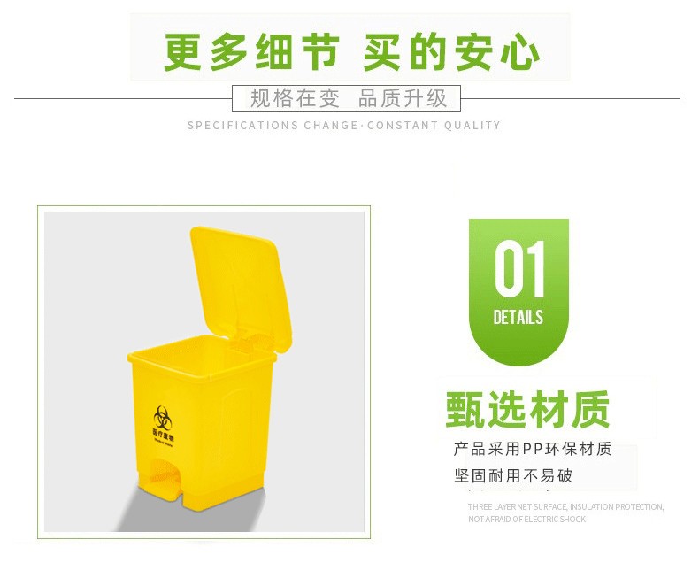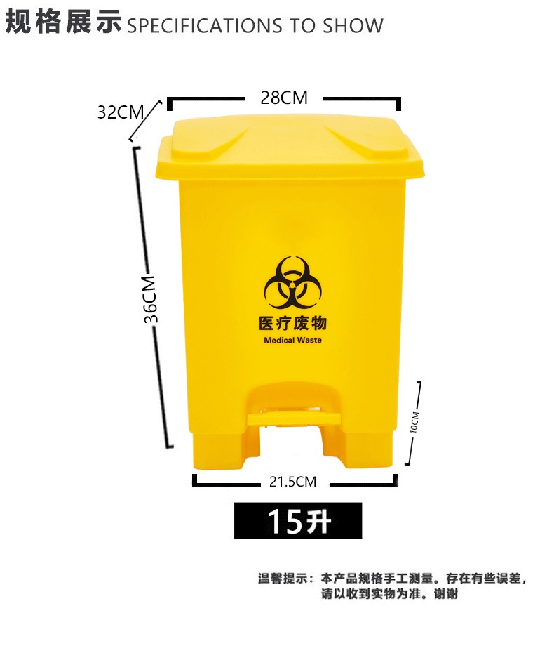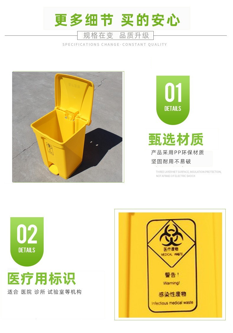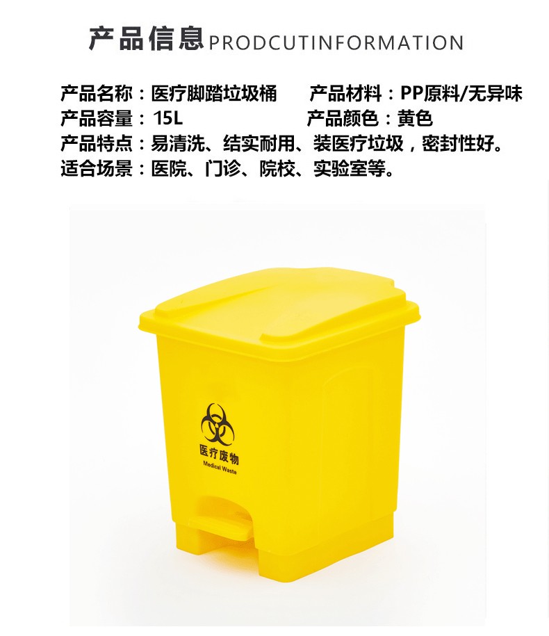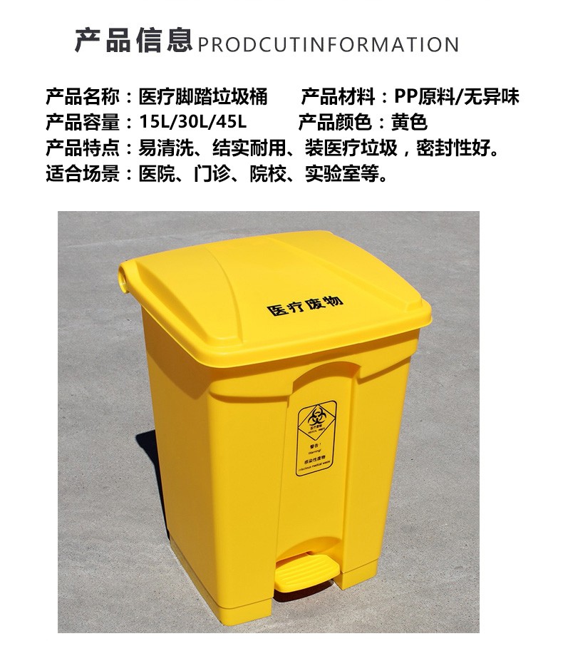 商品名称:医疗废物垃圾桶 黄色加厚 45L医疗脚踏垃圾桶