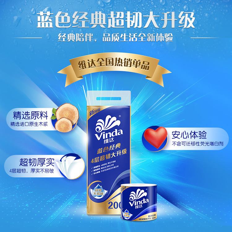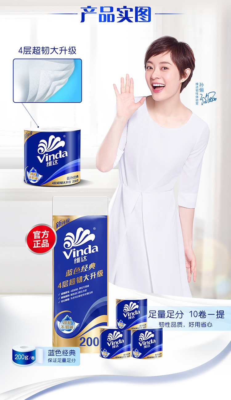 商品名称:维达V4073 卷纸 蓝色经典4层200克*10卷/提