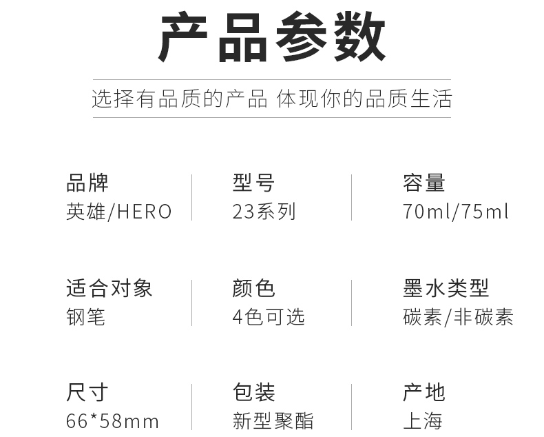 商品名称:英雄钢笔墨水 234A碳素墨水70ml升级抗摔瓶 黑色